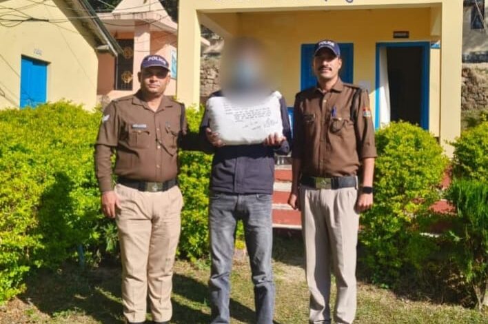 A team from Purola police station arrested a young man carrying illegal hashish near Billa Khad on the Naugaon-Vikasnagar road. According to the information received, 930 grams hashish was recovered from the accused’s possession whose market value was Rs 1.8 lakh.