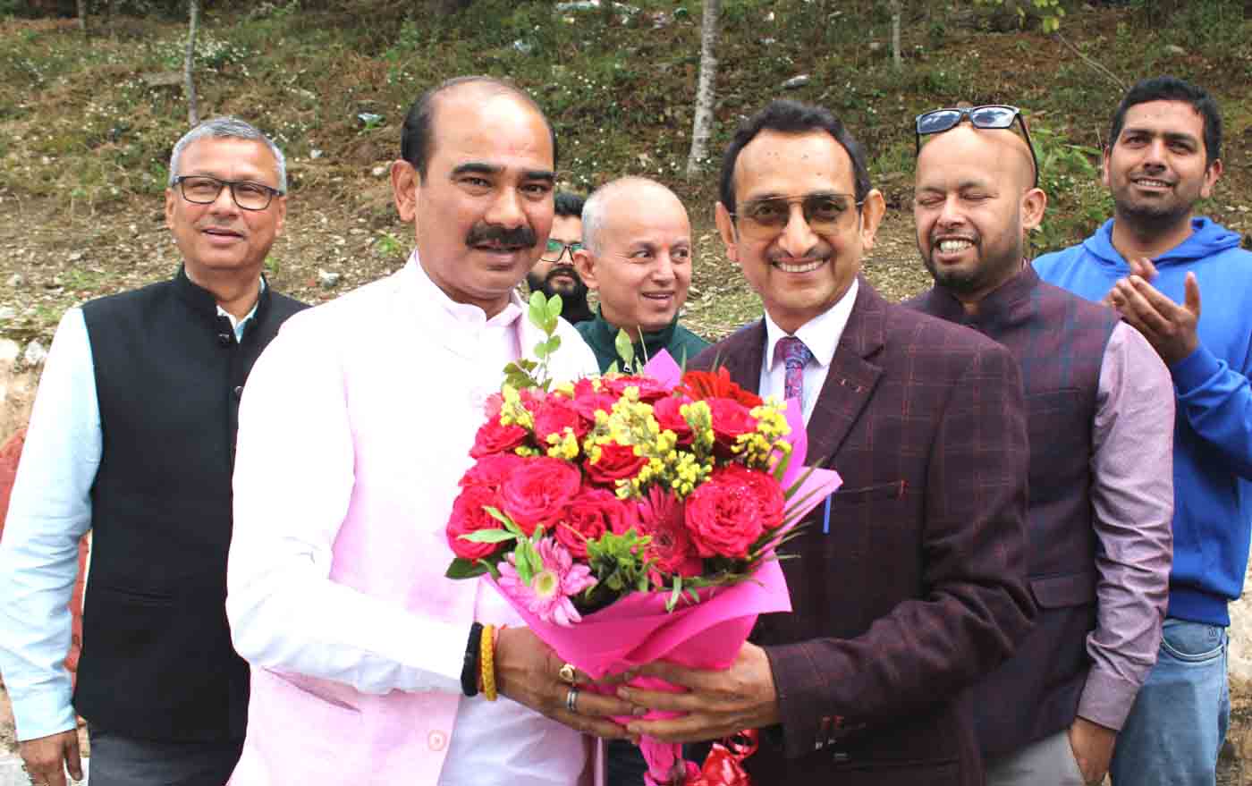 The Union minister of State Ajay Tamta visited the Sridev Suman Uttarakhand University on Thursday. The vice chancellor of the university NK Joshi welcomed the minister in the campus by presenting him a souvenir.